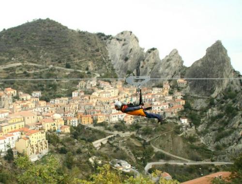 L’ormai famoso “volo dell’angelo” di Pietrapertosa e Castelmezzano è l’attrazione turistica che ci invidiano anche al nord e di cui tutti parlano. Un minuto sospesi in aria lanciati a 120 Km/h da un paese all’altro delle dolomiti lucane.