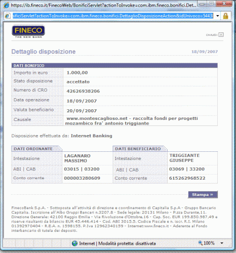Alla festa Montescaglioso.NET (avevamo deciso 1 euro devoluto per ogni pagante) eravamo 406 paganti. Qualcuno ha lasciato qualcosa in più oltre al prezzo del biglietto. In totale per il Mozambico si è raccolto 434 Euro.