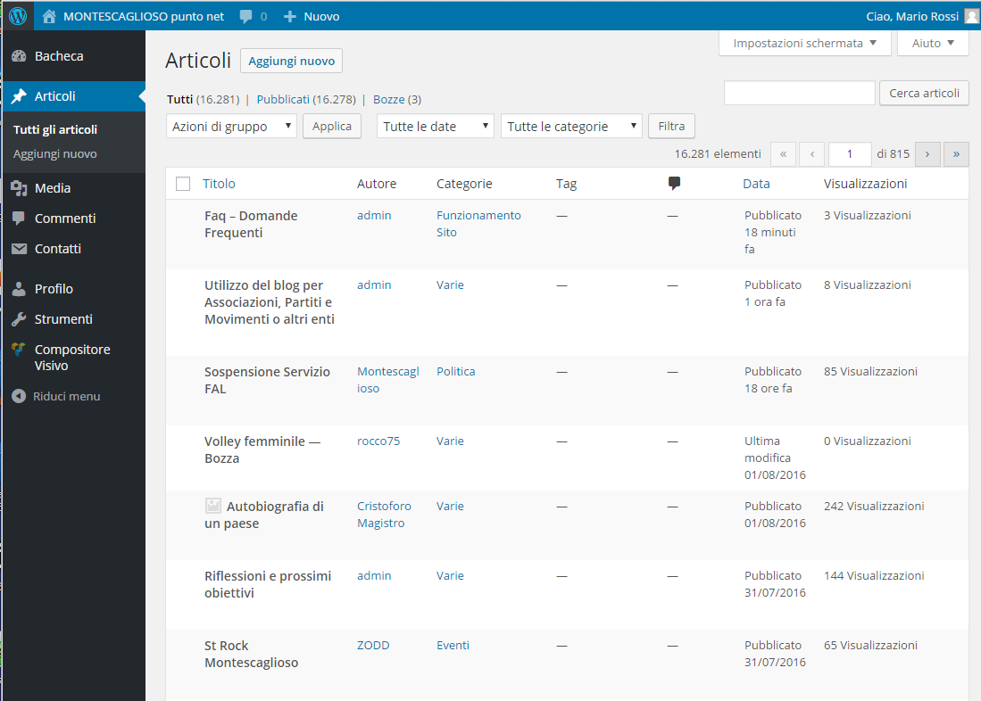- Dove trovo l’elenco dei miei articoli le mie immagini ed i miei commenti ? Nella vostra area riservata potete accedere (cercare e filtrare) tutti gli contenuti del sito e potete (ovviamente) modificare solo i vostri