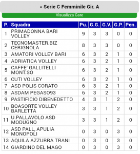 La prestazione è stata positiva e ha denotato una condizione che cresce sempre più. Non dimentichiamo – ricorda il presidente Vittorio Di Grazio – che rispetto alle altre grandi del campionato noi abbiamo cominciato la preparazione più tardi e completato l’organico poco prima dell’ inizio della stagione. A Trani abbiamo dominato il primo set, poi le padrone di casa si sono gasate e, forti anche del fattore campo, si sono portate sull’ 1-1. Senza storia il terzo e il quarto set, con un ottima DE Moraes.