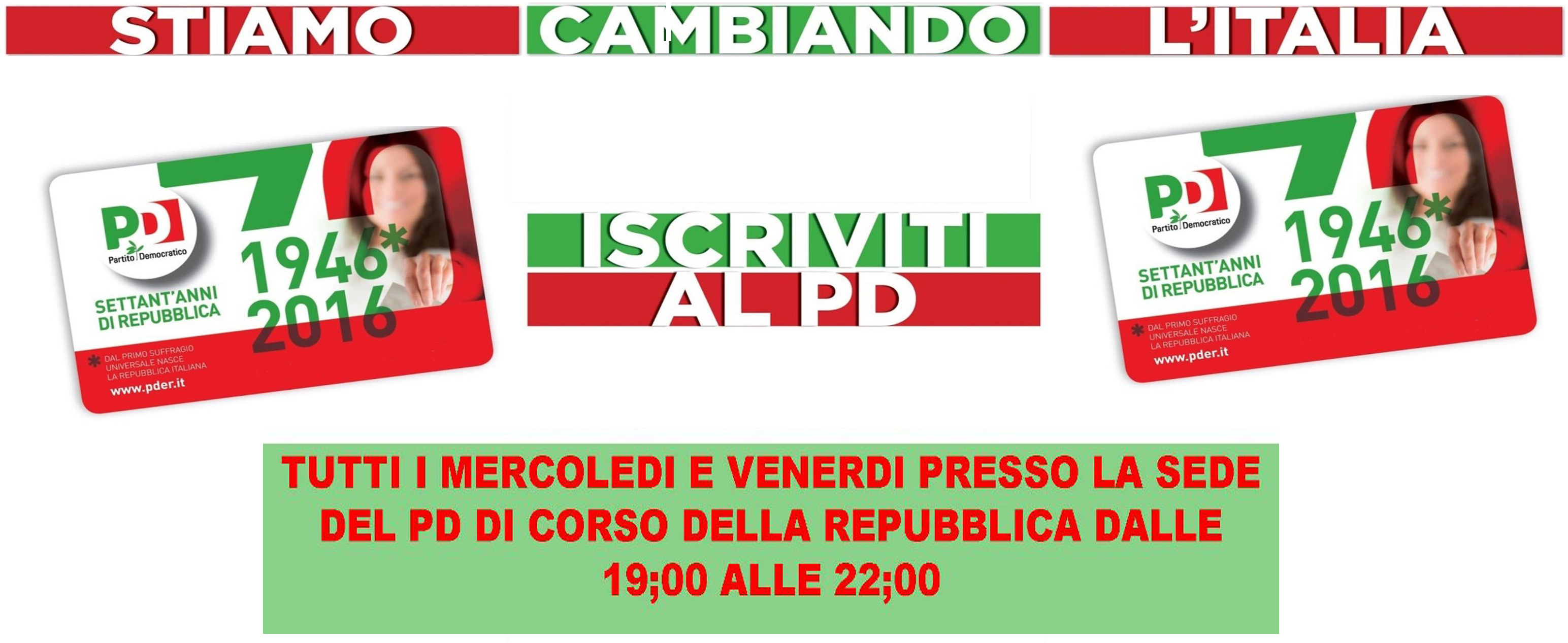 Domenica 27/11/2016 Presso la sede PD di Corso Repubblica Tesseramento al Partito Democratico a partire dalle ore 10.00