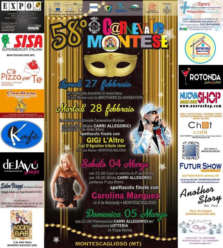 Siete tutti invitati a Montescaglioso per la 58esima edizione del Carnevale Montese!