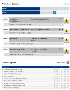 Ciumnera Potenza:Lo Sardo 24,Montemuro, Marchese 11, Guglielmi,Paggi 6,Montemurro 27,De Marca 4,Araneo, Gallo. All. Montemurro