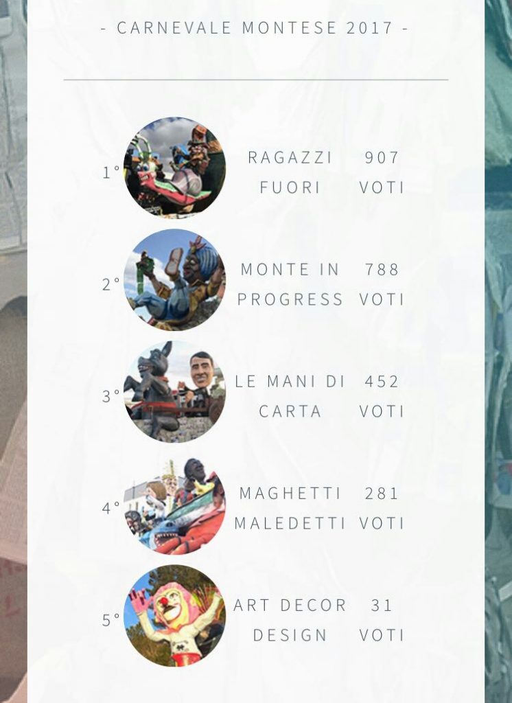 Di seguito si allega la scheda di valutazione redatta dai giudici della commissione tecnica e la classifica generata dal voto popolare.