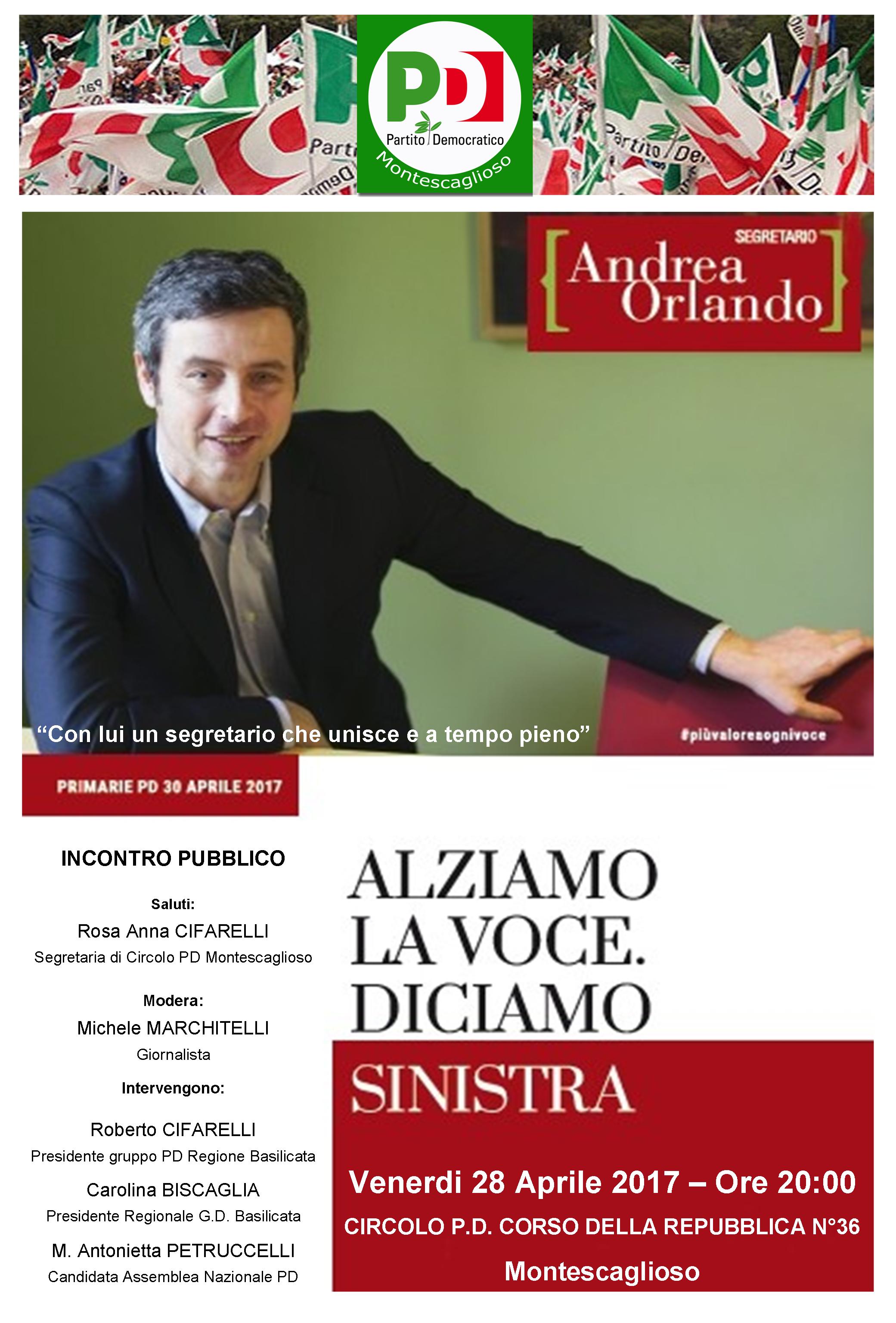 Venerdì 28 aprile ORE 20.00 presso circolo PD Corso della Repubblica 36 iniziativa per Orlando Segretario.