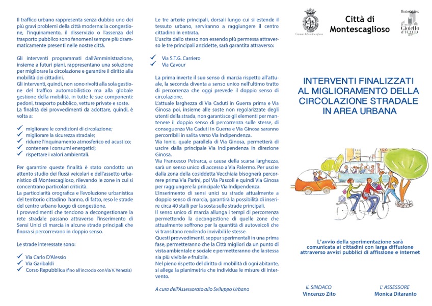 Facendo seguito all’approvazione della Delibera di Giunta Comunale di “istituzione sensi unici di circolazione, tariffe e orari di sosta a pagamento”, si informa la cittadinanza che in questi giorni saranno consegnate presso ciascuna abitazione delle brochure informative. Prima dell’effettiva entrata in vigore, appena possibile, sarà cura dell’Amministrazione Comunale organizzare un incontro pubblico per illustrarne nei dettagli i contenuti.