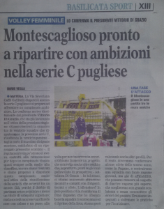 La Vis Severiana Caffe’ Gallitelli disputera’ ancora la serie C pugliese e si prepara ad affrontare un campionato ambizioso. La conferma arriva direttamente dal presidente Vittorio Di Grazio, che sta’ gia’ lavorando nell’ottica della prossima stagione. Siamo rientrati in organico tra le ventotto squadre che disputeranno la prossima serie C, risultando la venticinquesima – taglia corto il massimo dirigente montese, soddisfatto di un ripescaggio pressoche’ scontato. – Il regolamento un po’ strano ci aveva costretti alla retrocessione pur dopo un campionato vissuto quasi sempre nella medio alta classifica, ma ora siamo rientrati e siamo propensi a disputare questo campionato, anche nell’ottica della riunificazione della serie B, che avverra’ tra un anno. Gia’, perche’ il dubbio di partenza era se acquisire o meno un titolo di categoria superiore; ma la societa’ montese vuol fare le cose con calma e un passo alla volta per non incorrere in errori. Abbiamo in mente un progetto,che coinvolga anche altre realta’ e che, soprattutto, punti su giovani pallavoliste di prospettiva – sottolinea Di Grazio -. In tal senso, ci stiamo muovendo attraverso incontri e contatti con dirigenti , tecnici e atlete. L’allenatore ? in pole position c’e’ la riconferma di Dino Esposito, che ha allenato bene la squadra lo scorso anno ed e’ il primo della lista; stiamo pero’ valutando anche altri profili. Per il resto, dovremo confermare alcune atlete dello scorso anno, come la Pagano, e costruiremo una squadra con tante ragazze giovani, ma gia’ di affidabilita’, che possano crescere al cospetto di due/tre ragazze piu’ esperte, che sceglieremo con grande oculatezza e senza commettere gli errori del passato. Ora siamo impegnati a sistemare le pratiche per l’iscrizione.