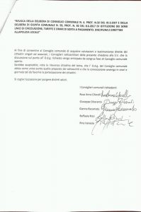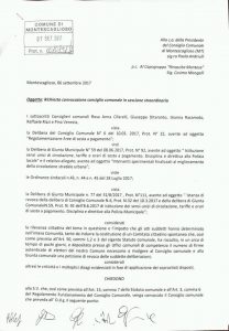 in virtù della raccolta firme, promossa dal Comitato “Cittadini per i Cittadini”, destinate all’istanza di revoca delle delibere inerenti la “sperimentazione” del nuovo piano traffico e la successiva presa d’atto da parte della Giunta comunale che, con delibera n. 77 del 31/8/2017, si è vista costretta ad accettare di discuterle nel prossimo consiglio comunale, i consiglieri dei due gruppi di opposizione, in data 7/9/2017, hanno presentato una richiesta, opportunamente congiunta, affinché codesta seduta consiliare venga aperta al pubblico, non solo, che sia anche effettuata in un giorno ed in orari idonei a consentire la vostra massima partecipazione.