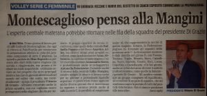 Montescaglioso pensa alla Mangini. L’esperta centrale materana potrebbe ritornare nelle fila della squadra del presidente Di Grazio.