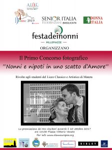 In occasione della “Festa dei nonni ” istituita in Italia nel 2005 con la legge 159, le associazioni :“A.I.D.E. Donne2019”, “Donna Italia” e “Senior Italia FederAnziani di Basilicata” in collaborazione con il Fotoclub Matera e il Comune di Matera, hanno indetto un concorso fotografico rivolto ai ragazzi del Liceo classico E. Duni e del Liceo Artistico C. Levi.