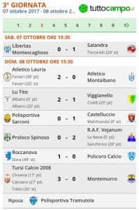 Tabellino 3° giornata:Montescaglioso – Salandra 0-1 ( 0-0 p.t. )