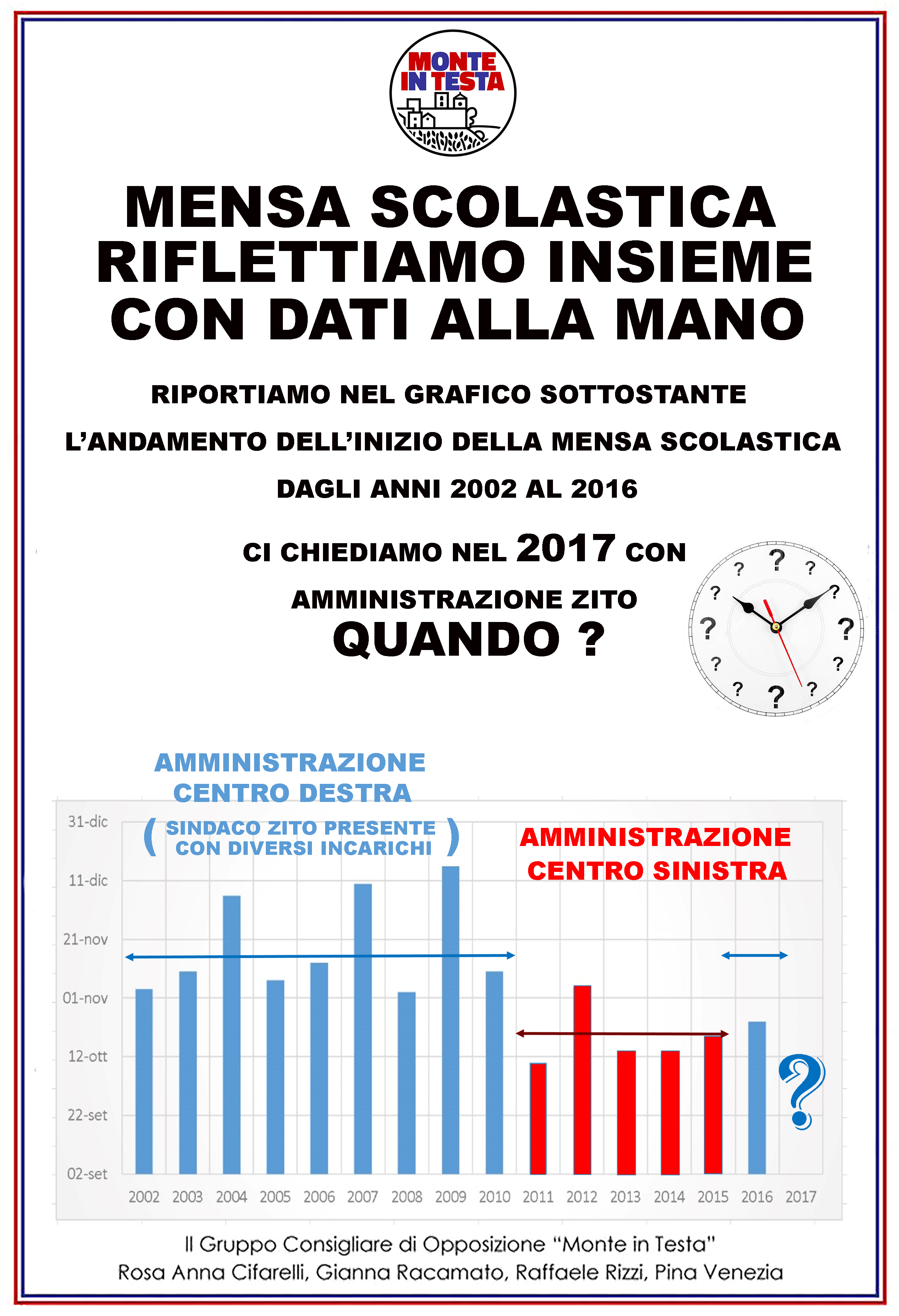 Riflettiamo insieme con dati alla mano sui tempi della mensa scolastica, ci chiediamo nel 2017 quando partirà ? perchè non cè ancora una data certa ? nel grafico sottostante sono state riportate le date di avvio della mensa scolastica negli anni