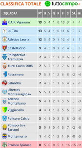 PRO LOCO SPINOSO: Vitale, Lucca, C. Oliva, Cascini,Iannibelli,Zito, G. Padula, A. Oliva, Balzano ( 15′ p.t. Carella), Robortella, Disanto (30′ s.t. Cascini). A disp. M.Padula, Solimando. All. Russo