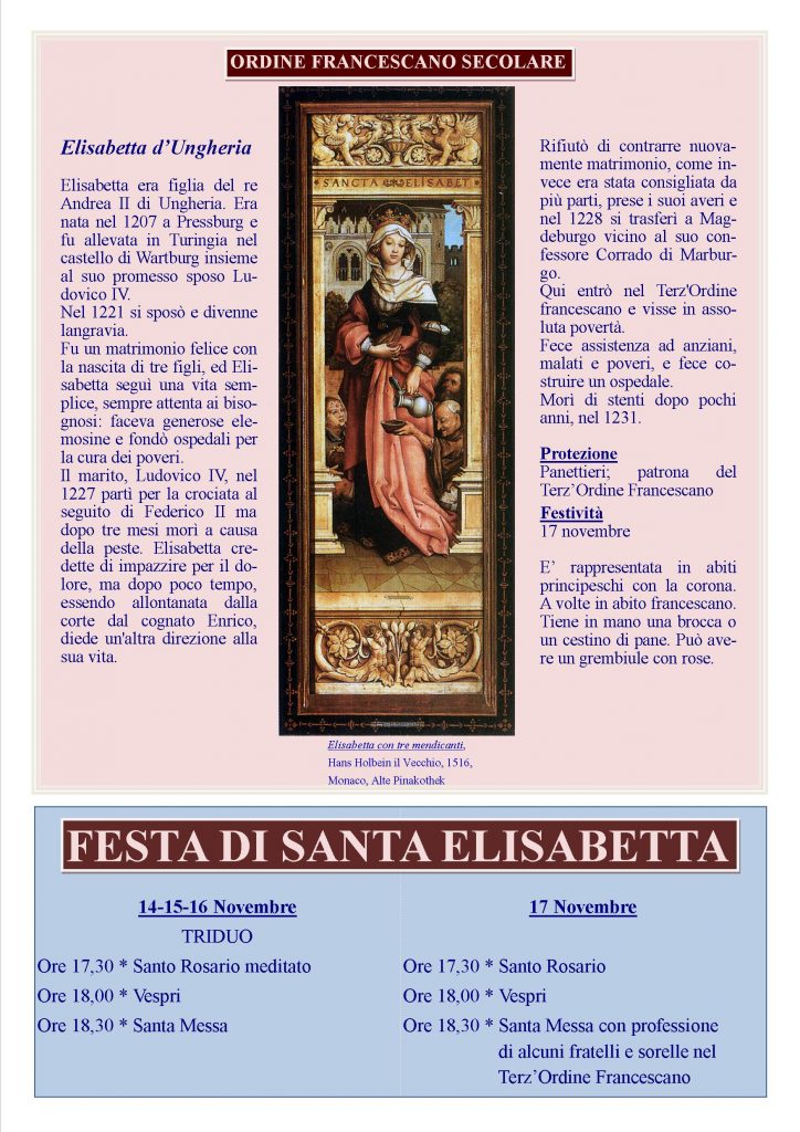 Festa di Santa Elisabetta Creato da Franco Mazzoccoli Data:12 Novembre 2017 in: Varie Lascia un Commento 2663 Visualizzazioni
