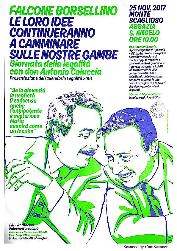Montescaglioso, giornata della legalità con don Antonio Coluccia Creato da Montescaglioso Data:21 Novembre 2017 in: Eventi, Persone, Società Lascia un Commento 1856 Visualizzazioni