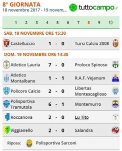 Nell’ ottava giornata della Prima categoria , il Montescaglioso e’ uscita sconfitta con il risultato di 2-0 nel derby con il Policoro.