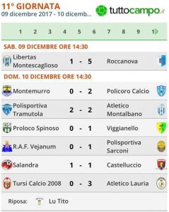 Tabellino 11° giornata: Montescaglioso- Roccanova 1-5