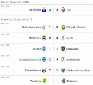 Tabellino: 15° giornata 1° di ritorno