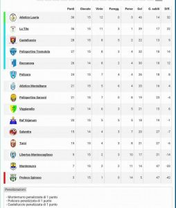 I montesi ora dovranno peraltro essere attenti a non perdere di vista le due squadre inseguitrici (Montemurro e Pro Loco Spinoso): l’ultimo posto, ovvero la retrocessione diretta, è distante soli sei punti. Certo, nulla è perduto, sviluppi positivi non possono essere a priori esclusi. Si spera in un cambio di rotta gia da sabato, quando saranno fondamentali i tre punti. L’ impegno il sacrificio durante gli allenamenti non manca mai dai piu grandi ai piu’ piccoli è cio’ e confortante per i biancazzurri.