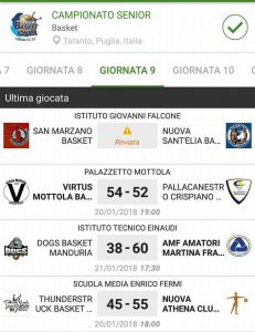 Tabellino 9° giornata: Thunderstruck Manduria – Athena Club Montescaglioso 45-55