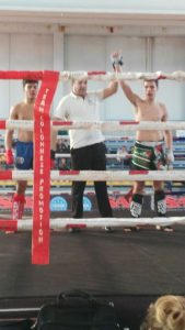 Sono stati 3 round da 2 minuti ciascuno, durante i quali il giovane atleta ha dimostrato tutto il suo bagaglio tecnico tattico mettendo giù il suo avversario con un pugno girato al mento al termine della prima ripresa.