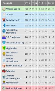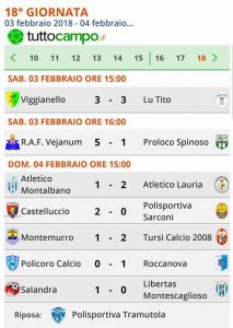 Tabellini 18° giornata:Salandra-Montescaglioso 1-0