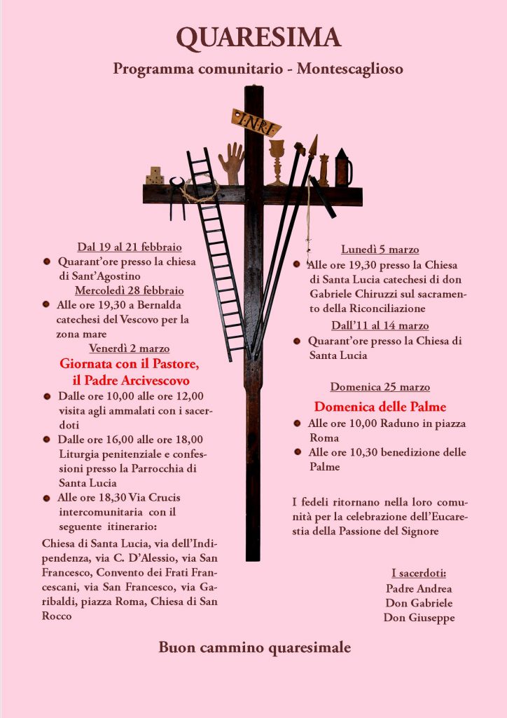 Quaresima – Programma comunitario Creato da Franco Mazzoccoli Data:19 Febbraio 2018 in: Varie Lascia un Commento 1537 Visualizzazioni