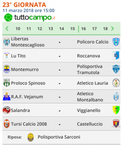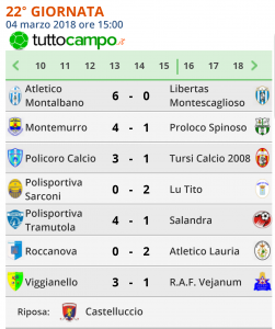 Tabellino 21° giornata: Atletico Montalbano- Polisportiva Montescaglioso 6-0