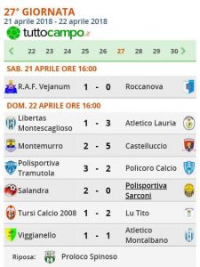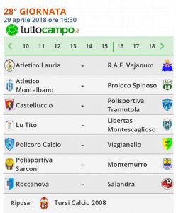 Lauria: Vigorito, Dulcetti, Carlomagno, Cantisani, Ielpo N., Ricciardi, Favieri, DeLeo(35′ st. Chiacchio),Olivieri(45′ st. Cozzi),Laino, Maimone. A disp. Manfredelli P., Pora, Ielpo P., Atzori, Manfredelli J., All. Riccio.