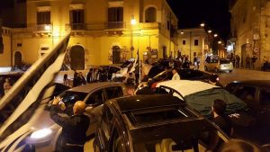 Centinaia di persone che hanno affollato le vie del centro cittadino, in particolare piazza Roma, tradizionale ritrovo per le tifoserie, e corso Repubblica e viale Indipendenza, dove decine di auto sono sfilate con i finestrini aperti e le bandiere svolazzanti.