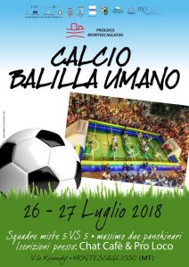 Il 26 e 27 luglio torna a Montescaglioso il “calcio Balilla umano “ , torneo organizzato dalla Pro Loco presieduta da Claudio Lapenta, giunto alla sua terza edizione. Teatro del particolarissimo torneo sara’ viale Kennedy, alle spalle dello stadio comunale, dove verra’ installato un gonfiabile che simlera’ il piu’ classico dei biliardini di calcio balilla, all’interno del quale si sfideranno due squadre alla volta, entrambe composte da cinque persone, con al massimo due riserve pronte a subentrare. La quaota di partecipazione e’ di 10 euro a partecipante: per le iscrizioni e’ possibile rivolgersi alla sede della Pro Loco, dalle 9 alle 12e dalle 16 alle, oppure alla caffetteria Chat cafe a qualsiasi orario. Il torneo – ha spiegato Lapenta – e’ un evento particolare e molto divertente: le gare si giocheranno di sera dalle 20 in poi,mentre la partecipazione e’ aperta a tutti ,anche a coloro che vivono fuori citta’. Anzi, mi preme sottolineare che teniamo molto alla presenza di squadre che provengano da fuori Montescaglioso.