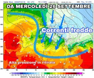 Stasera vediamo insieme una tendenza che molti modelli di previsione inquadrano ormai da qualche giorno; intorno alla metà della prossima settimana ( per ora sembrerebbe mercoledì 26 settembre ) una profonda depressione colma di aria decisamente fresca ( addirittira fredda ) per il periodo potrebbe tuffarsi sul Mediterraneo orientale. Tale configurazione provocherebbe diffuso maltempo temporalesco e soprattutto un importante calo termico nell’ordine dei 10°C. In 24 ore si potrebbe così piombare dall’estate al tardo autunno, con le temperature massime che faticherebbero a superare i 20°C e le minime che scenderebbero sotto i 15°C.