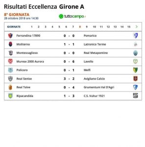 Tabellini 8°giornata:Montescaglioso Calcio – Real Metapontino 0-0