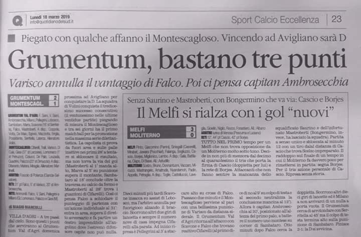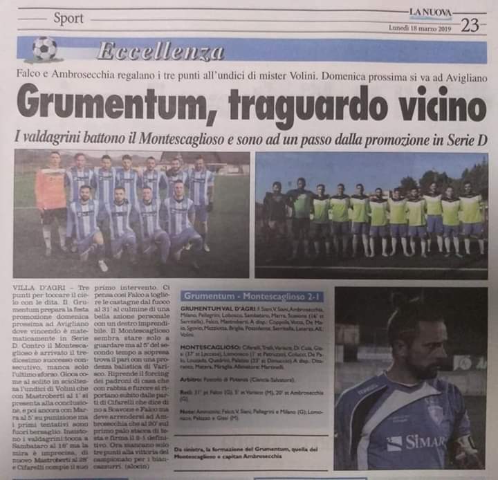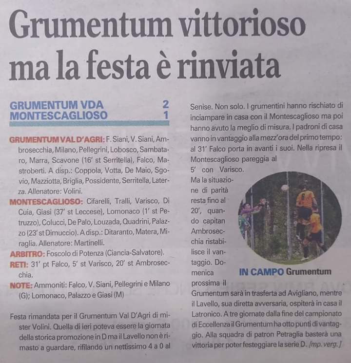 Montescaglioso calcio sconfitto in casa della capolista Grumentum Creato da rafa85 Data:19 Marzo 2019 in: Varie Lascia un Commento 836 Visualizzazioni