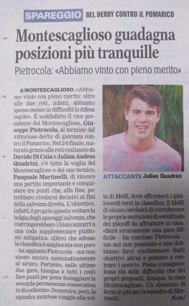 Montescaglioso guadagna posizioni più tranquille Creato da rafa85 Data:28 Marzo 2019 in: Varie Lascia un Commento 783 Visualizzazioni