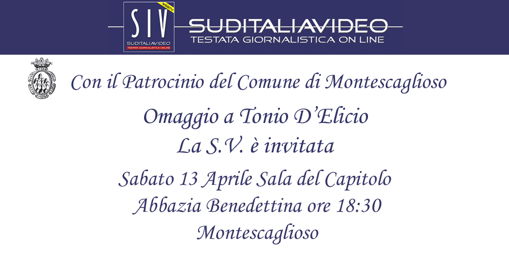 “Omaggio a Tonio D’Elicio”, è l’iniziativa organizzata dalla Testata Giornalistica SudItaliaVideo per ricordare lo storico della Città di Montescaglioso scomparso il 5 marzo scorso.