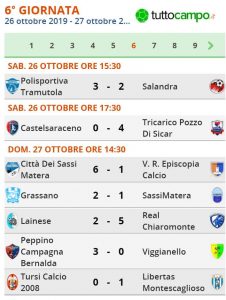 Tabellini 6^ giornata Tursi- Montescaglioso 0-1