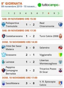 Tabellini 8^ giornata :Lainese -P.L.Montescaglioso 1-2