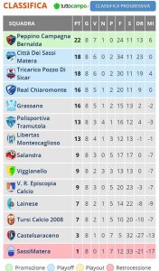 Montescaglioso: Cifarelli ,Leone Ra; Rossetti And; Eletto G; Didio (25′ st. Ditaranto),Petruzzo (5′ st. Potenza), Simmarano, Leone ,Motola ,Ingordino (40′ st. Perillo).Bubbico. A disp. Rossetti Ant. Mossuti. All. D’Adamo
