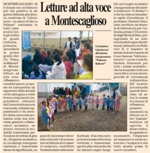 MONTESCAGLIOSO- Si è chiusa con un bilancio più che positivo la sei giorni dedica alla lettura condivisa di “Libriamoci – un sacco di libri a Palazzo” realizzata in tuttii plessi ed in tutti gli ordini di grado (infanzia,primaria,secondaria di primo grado) dell’Ic “Palazzo-Salinari”di Montescaglioso: letture ad alta voce,riflessioni e considerazioni proposte ed interpretate da esponenti della società civile allargata a tutte le sue componenti (imprenditori, referenti dell’amministrazione comunale, cittadini appassionati) e da membri della comunità scolastica nella sua interezza: genitori, collaboratori scolastici, ex alunni, docenti in modalità trasversale per funzioni ed ordine di grado, dirigente scolastico,in un dialogo intergenerazionale e trasversale denso di significanza, capace di valorizzare diversità culturali e di aumentare la fiducia ed il rispetto reciproco, contributo fondamentale nella società attuale. Una vera e propria kermesse letteraria verticale e trasversale,aperta alla comunità che ha lasciato segni tangibili nei luoghi scolastici (inaugurazione del salotto letterario “G.Rodari”) e che ha visto avvicendarsi ospiti d’eccellenza: il professor Daniele Giancane, scrittore, ex docente di letteratura per l’infanzia presso l’Università degli Studi di Bari, protagonista di un indimenticabile approfondimento letterario su Federico II, il maestro divstradaAntonio Lacava edil suo famoso “bibliomotocarro”- un tre ruote-biblioteca itinerante per tutti i plessi scolastici che ha incantato tutti coni suoi libri e le sue storie,gravide di “circostanzei indimenticabili”. La scuola è comunità quando favorisce ed attua la messa in comune di riflessioni,pensieri,emozioni e la lettura un libro “insieme”sostiene ed agevola il senso critico, le capacità comunicative, l’imparare ad imparare in modo autonomo; l’auspicio è che tutto questo possa di nuovo accadere.