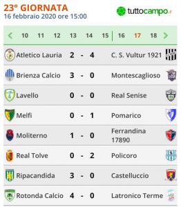 Tabellino 23^ giornata : Brienza – Montescaglioso 3-0