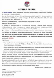 Non sappiamo a quanto ammonteranno queste ultime risorse, se saranno poche o se saranno tante, ma l’impegno che chiediamo di prendere pubblicamente al Sindaco e alla Giunta comunale è che, pochi o tanti che siano, ogni euro di queste due misure non sia destinato ad altro se non alla riduzione delle tasse a favore delle imprese e dei cittadini che hanno sofferto l’emergenza sanitaria da COVID-19.