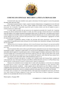 Comunicato ufficiale riguardante la festa patronale 2020 Creato da rafa85 Data:28 Giugno 2020 in: Varie Lascia un Commento 1386 Visualizzazioni