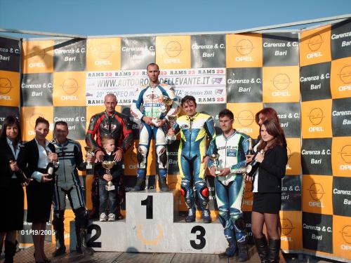 Come annunciato in precedenza, ieri 26 ottobre nell’ autodromo di Binetto (BA) si è disputata la prima delle tre gare di velocità di motociclette, di cui a preso parte il nosto pilota Oliva Pino detto Spinotto, dopo tanto lavoro perchè all’ ultimo momento a dovuto cambiare marca di gomme e riuscito a conquistare il quarto posto (prima fila),tenendo presente che in griglia erano ben ventuno piloti. Primo posto per Spalierno Nicola detentore del record della pista di Binetto, secondo Diviccaro Cosimo proveniente dal campionato italiano di superbaike, terzo posto Gentile Flavio proveniente dal campionato della coppa italia superstock 1000, poi al quarto posto proveniente dalla sua autofficina di Montescaglioso Oliva Pino, quinto Bungaro Stefano un vecchio detentore di record e gare a Binetto, e poi tanti altri come all’ ottvo posto Rubino Raffaele pilota di Matera proveniente dal trofeo yamaha R1 cup. Dopo un ottima partenza e riuscito a posizionasi al secondo posto alle spalle del pilota Gentile Flavio , e per ben più di metà gara è riuscito a tener testa allo scatenato Spalierno Nicola che grazie alla sua bravura e alla sua potentissima moto è riuscito a sorpassarlo. Ma Spinotto grazie alla sua bravura è riuscito di gran merito a conquistare il terzo posto del podio. Comunque e stata una bellissima gara, peccato per chi non c’ èra. Per chi volesse venire a godersi la seconda gara, ci vediamo a Binetto (BA) il 9 novembre. Un saluto e ringraziamento va ai tifosi e tifose che erano presenti. GRAZIE da PEGASUS.