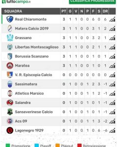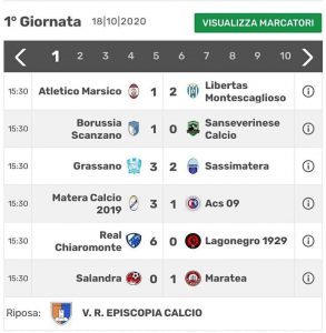 Tabellini 1^ giornata: Atletico Marsico- P.L.Montescaglioso 1-2