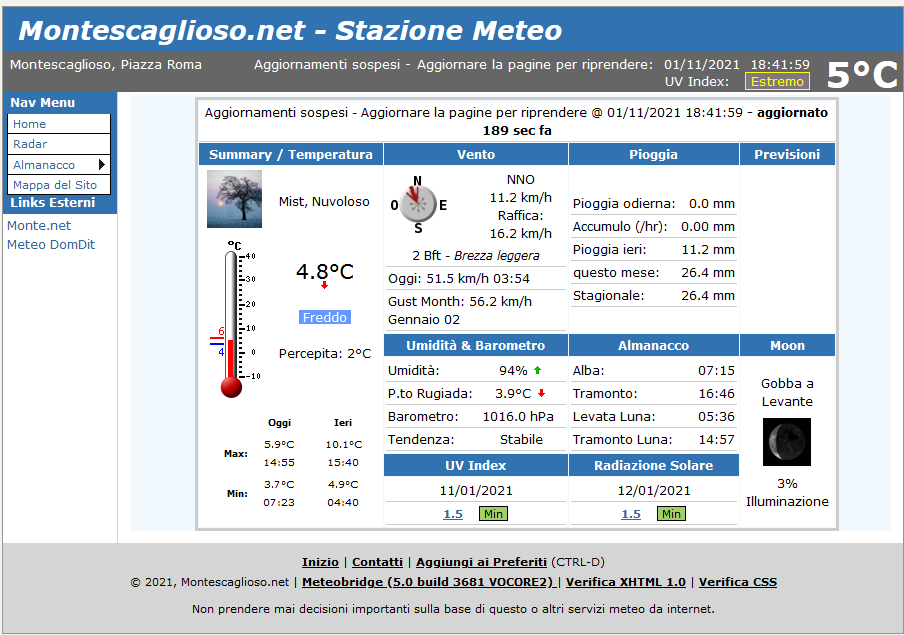 Dopo una fase di test durata qualche mese è ufficialmente on line da inizio anno, una nuova stazione meteo installata in Piazza Roma, nel centro del comune lucano ad una altitudine di 365 metri.