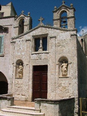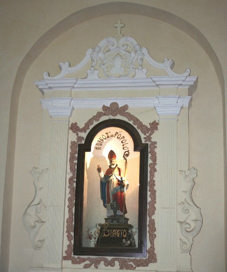Matera. Una chiesa di S. Biagio risalente alla metà del secolo XVII è eretta lungo ai margini della città barocca. La presenza nella facciata delle statue di S. Lucia e S. Agata, potrebbe attestare il possesso della chiesa da parte dell’omonimo monastero benedettino femminile. La chiesa è luogo di pratiche cultuali legate alle virtù taumaturgiche del Santo e si propone come elemento significativo della religiosità popolare di Matera.