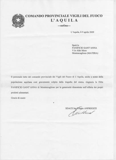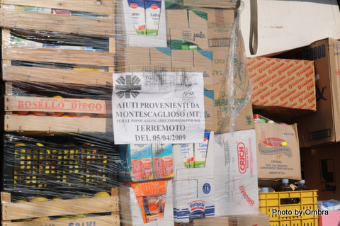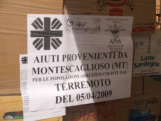 Vorrei ringraziare tutti coloro che hanno usato parole di elogio nei nostri confronti, ma vorrei sottolineare che gli ELOGI PIù GRANDI e gli APPLAUSI PIù FRAGOROSI vanno fatti a tutti i montesi che hanno dimostrato di non essere impassibili difronte ad una tragedia di queste dimensioni. E’ bastato un semplice spicheraggio a mobilitare l’intera cittadina: da un rione all’altro tutti hanno portato il loro contributo dandoci la possibilità in solo 10 ore circa di raccogliere così tanta roba da partire la sera stessa. ed avere già pronto per domani un altro carico. Ringrazio tutti coloro che hanno dedicato parte del loro tempo alla eccellente riuscita dell’iniziativa. Questa esperienza fatta a L’Aquila mi ha dato modo di vedere come nella tragicità della situazione, non esistono differenza di ideologie politiche, religiose, culturali e soprattutto geografiche: si lavora tutti fianco a fianco per dare un minimo di speranza e di sollievo a chi soffre. La stessa cosa è successa anche a Montescaglioso, dove associazioni di carattere religioso, commerciale, culturale e singoli cittadini, hanno condiviso un obiettivo unico "AIUTARE CHI IN QUESTO MOMENTO HA BISOGNO".