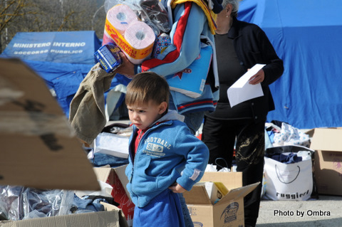 QUELLO CHE SOPRATUTTO MI HA COLPITO è STATA LA DIGNITà DELLA GENTE ABRUZZESE,UN POPOLO COSì DURAMENTE COLPITO CHE PRENDEVA LE COSE CHE AVEVAMO PORTATO CHIEDENDOCI "PER PIACERE" SE POTEVAMO DARGLIELE…….E I BAMBINI CHE CI GUARDAVANO CON GLI OCCHI DI CHI ANCHE SE PICCOLI SI RENDEVANO CONTO DI QUELLO CHE GLI ERA CAPITATO.