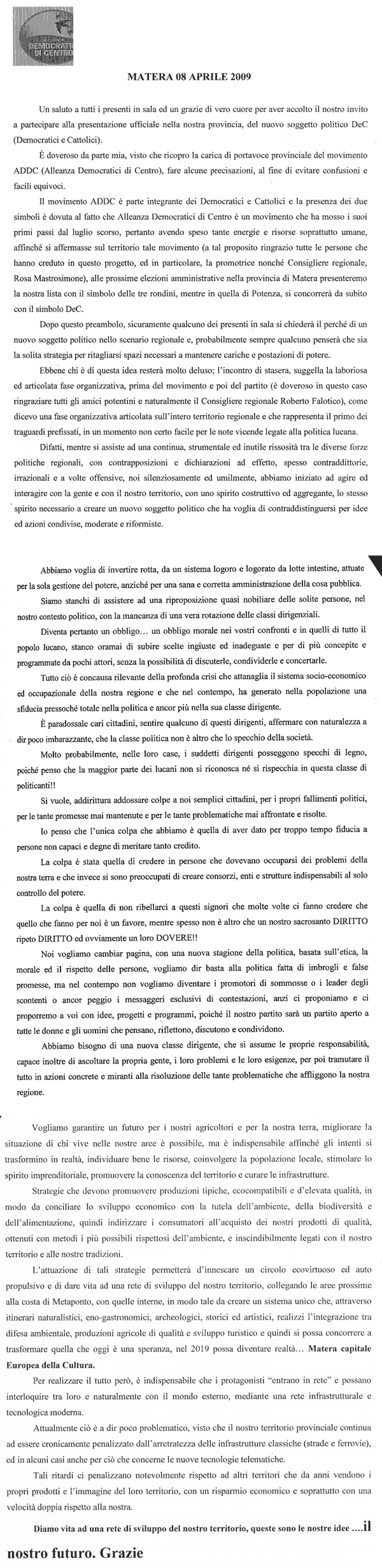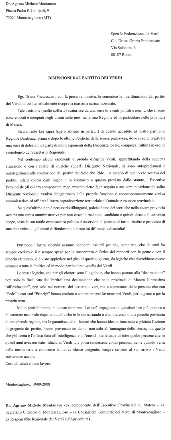 Egr. sig. Nico, per prima cosa la ringrazio per l’attestazione di stima manifestata in seguito alla visione dell’intervista elettorale; per quanto riguarda il nome dell’associazione nella quale ho militato per quasi un decennio (precisamente sino all’inizio del 2004) e contribuito alla sua fondazione, non ho alcun problema a citarla: Azione Diretta. Successivamente alla data su indicata, le strade si son divise (senza alcun rancore!!!), poiché non condividevo più alcune decisioni e scelte politiche che il gruppo aveva deliberato. Spero di aver fatto cosa gradita e nell’attesa di sue (o di tutti gli utenti di montescaglioso.net) eventuali comunicazioni, porgo Cordiali saluti. Michele Montanaro